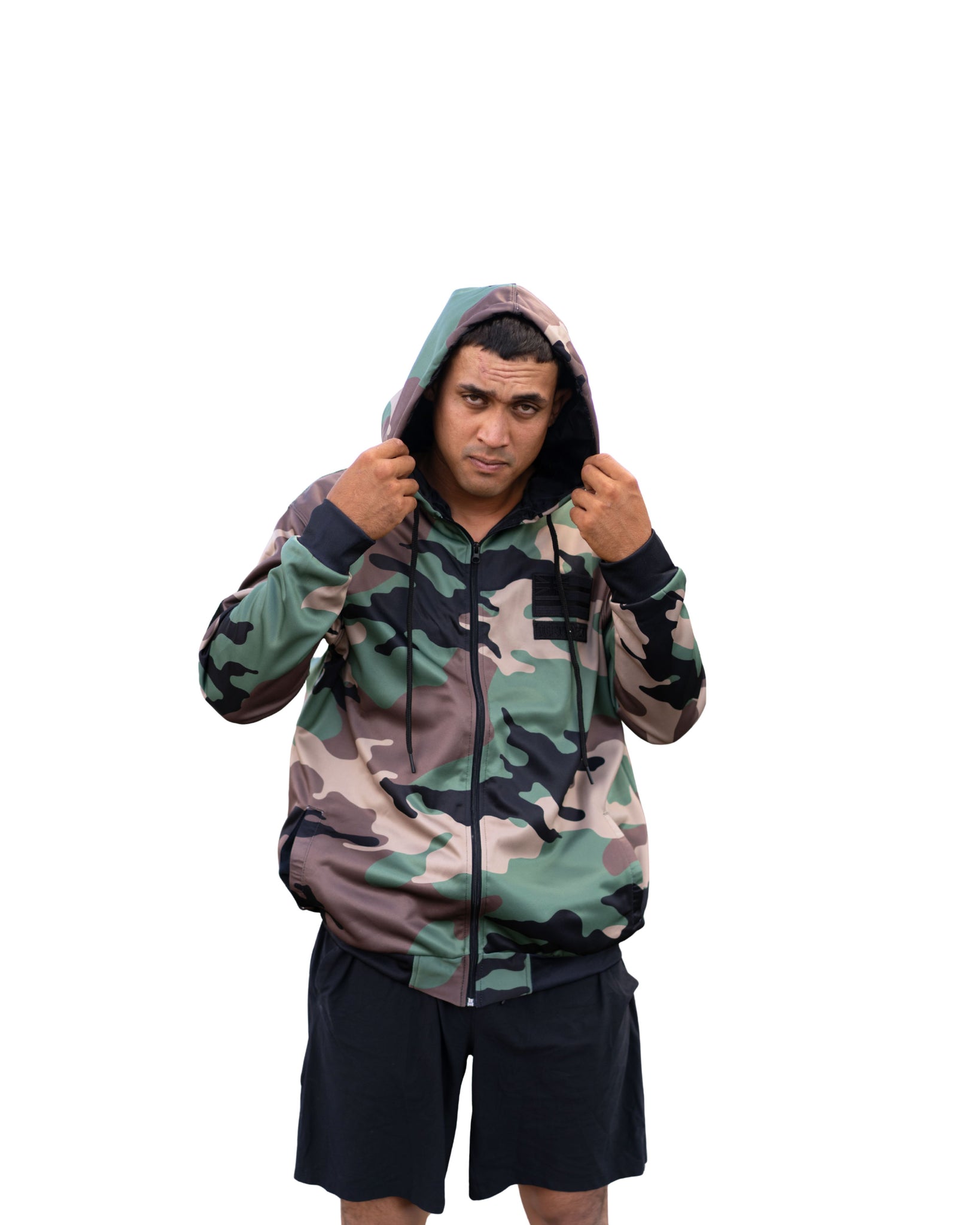 MILITARY CAMO HOODED BOMBER JACKET