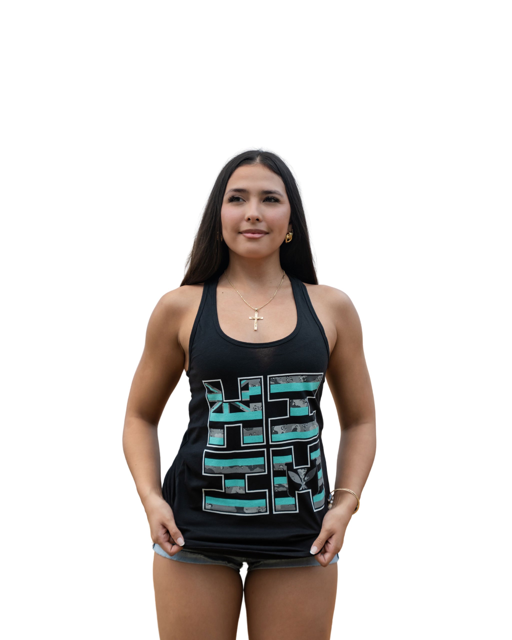 WOMEN'S FLAG CAMO LOGO TEAL TOP