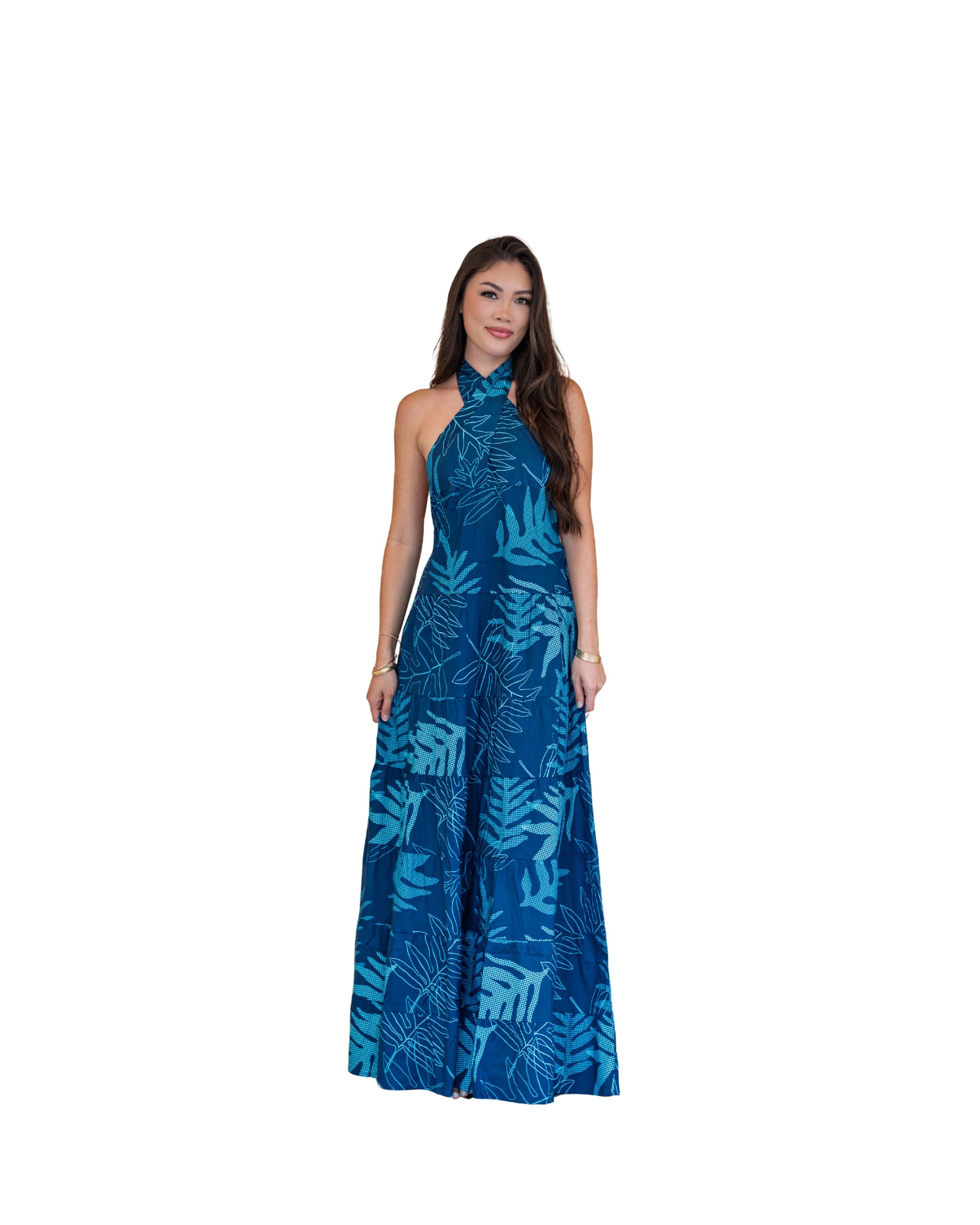 ONAONA WOMEN'S BLUE CROSS-NECK DRESS