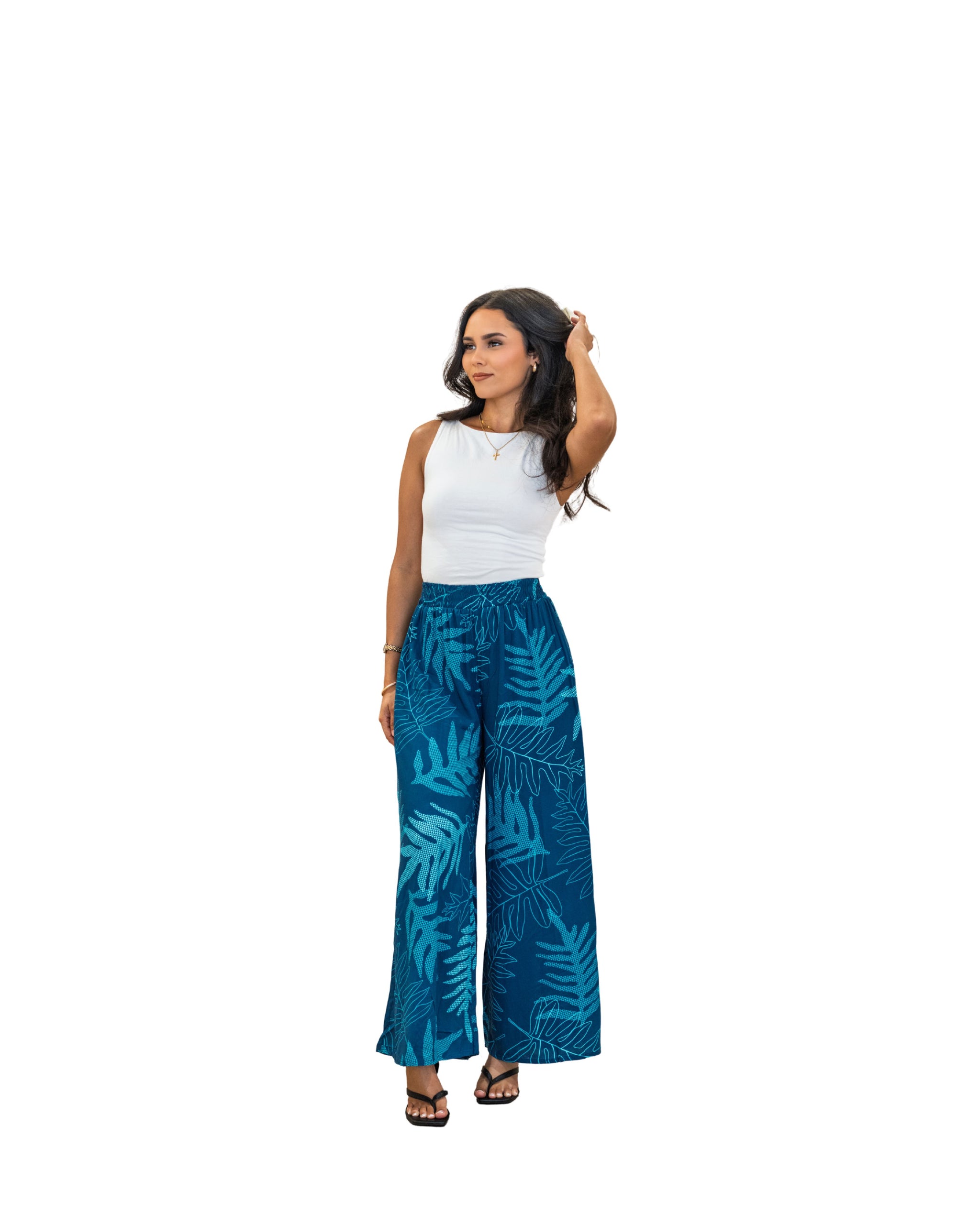 ONAONA WOMEN'S BLUE FLOWY PANTS